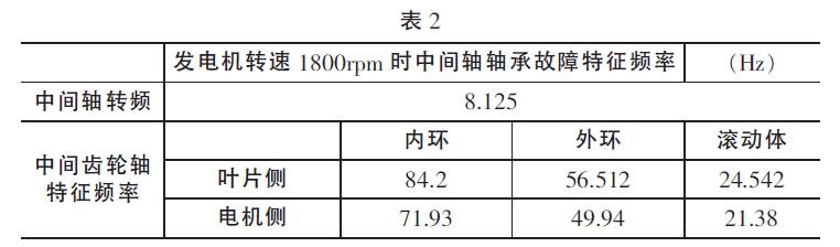 (1)該風(fēng)力發(fā)電機組齒輪箱中間級軸承故障特征頻率