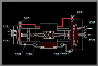 活塞式壓縮機的工作是氣缸、氣閥和在氣缸中作往復運動(dòng)的活塞所構成的工作容積不斷變化來(lái)完成。如果不考慮活塞式壓縮機實(shí)際工作中的容積損失和能量損失(即理想工作過(guò)程),則活塞式壓縮機曲軸每旋轉一周所完成的工作,可分為吸氣,壓縮和排氣過(guò)程。